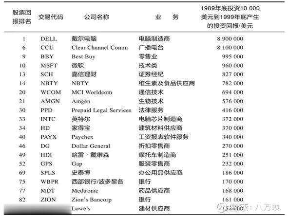 表1 1990年代美国股市20只大牛的启示