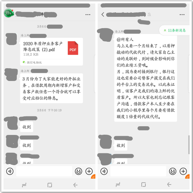 一方面,对海洋鲜货销售人员来说有一定的风险。上述业务员王力表示,公司贷款用户的担保人都是公司业务员,他曾经找到的有贷款需求的担保人就是他的名字。许多员工离职时也与公司发生了纠纷。毕竟,这么多贷款的担保人都是推销员。