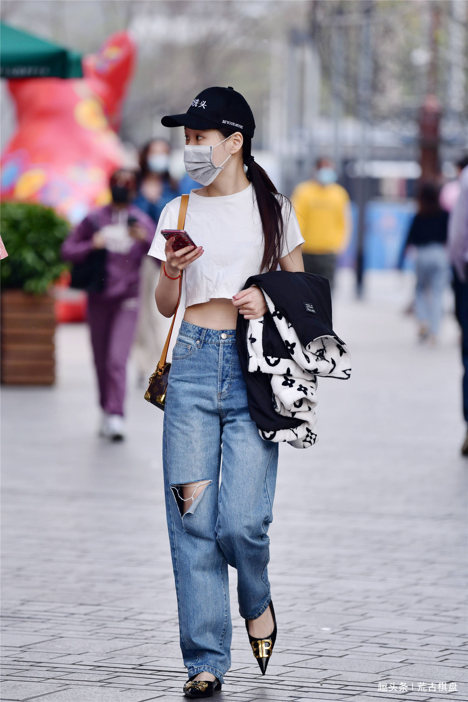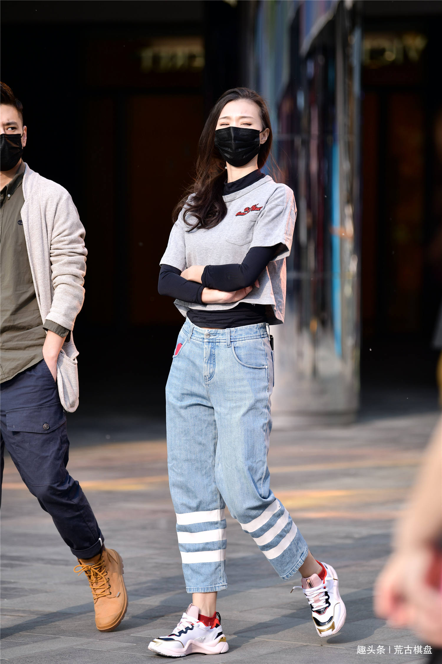 今年春天流行穿着牛仔裤,要和口罩搭配在一起,逛街增加个性