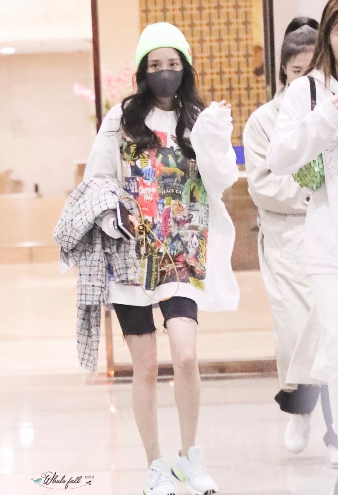 宋妍霏也采用了大t恤和马裤的标准,但换上了马丁靴子和渔夫帽,这立刻给街道的整体造型增添了一点青春和甜蜜。