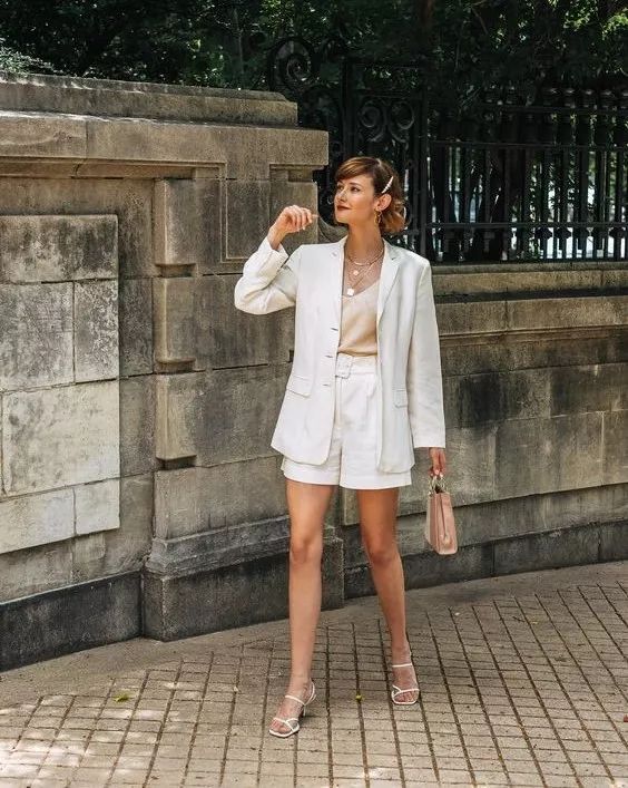 如果你想穿套装和短裤,你可以在夹克上花些力气。透视、蕾丝和其他元素都是不错的选择。