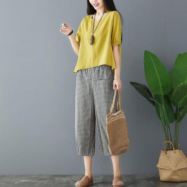 不规则的棉麻套装给人一种强烈的复古感。寻求安慰的女人一定不能错过她们。这种面料很薄,吸汗透气。难怪他们受到四五十岁女性的喜爱!格子裤用途广泛,不能选择身体。他们可以马上变得越来越高。他们有完整的设计感。搭配木质项链,给人一种优雅、时尚、个性化的态度。
