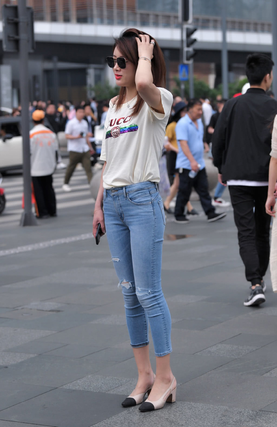 就像这个选择穿牛仔裤的小妹妹一样,她穿着随意,很有个性。对于选择牛仔裤的女孩来说,她们必须考虑的一件事是创造一种凉爽的感觉。你知道,与短裙和短裤相比,牛仔裤相对来说比较沉闷,这就是为什么选择牛仔裤的女孩需要更加注意一些细节。