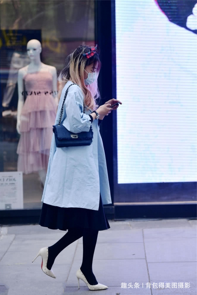 1.穿着高跟鞋,小妹妹在购物时变得更加自信。他们会选择适合身高的高跟鞋,这样走路会更优雅,展示他们精致的时尚。小妹妹的灰色尖头细长鞋,侧面有铆钉,增加了层次感。8厘米的高度衬托出高大的身材和黑色的连裤袜,具有保暖效果。黑色长裙与蓝色长风衣搭配,既有层次感,又有精致感。