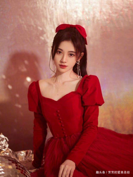 以斯帖选择的风格相对简单,露出美丽的锁骨,更适合普通女孩学习。