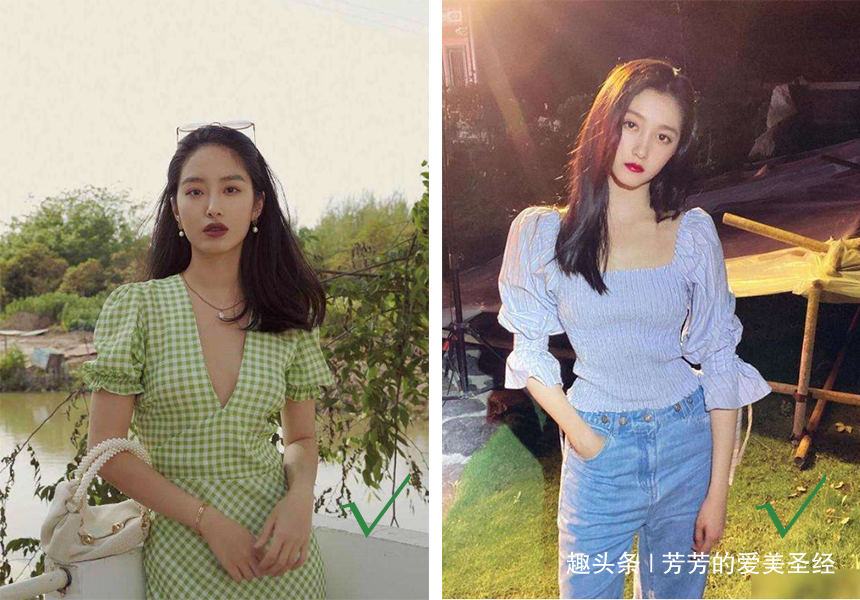 因此,对于窄肩的人来说,穿一点泡泡袖可以使肩膀更宽,比例会更协调,头和脸会更小。