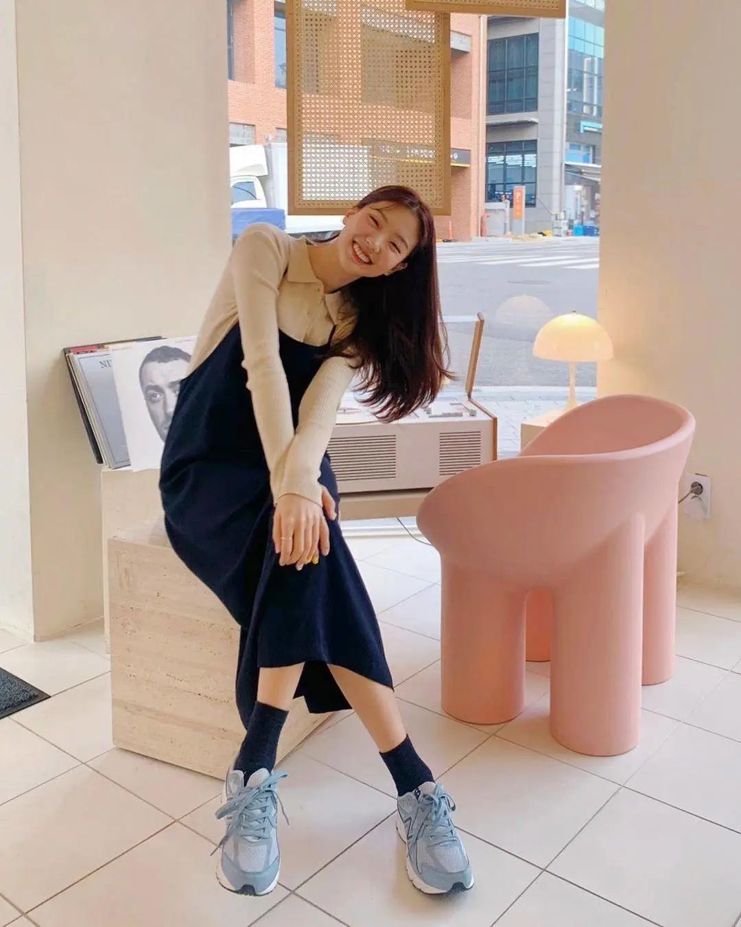 针织打底上有细节设计,也会让这个搭配显得更精致~利和小姐姐还试过内搭针织Polo衫,穿一双运动鞋显得很有活力。内搭看上去有点像衬衫,针织的质地在乍暖还寒的季节保暖又好看~