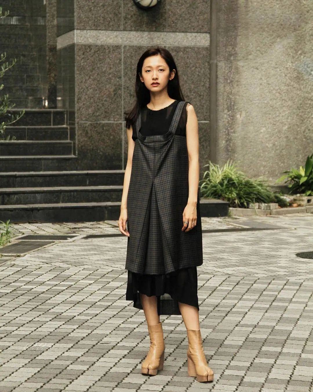外穿の吊带裙这种穿法适合想展现吊带裙,但不喜欢露肤太多,想修饰腿粗、溜肩等身材问题的集美,对于竹竿的H型身材也是很友好的搭配~将吊带裙穿在外面,打底也可以充满想象力,又会让你有一种拥有好多条裙子的感觉。Iola喜欢的这个模特小解解,同一条绸面吊带裙已经出现过很多遍了,搭配不同的打底。每次都有新鲜感~