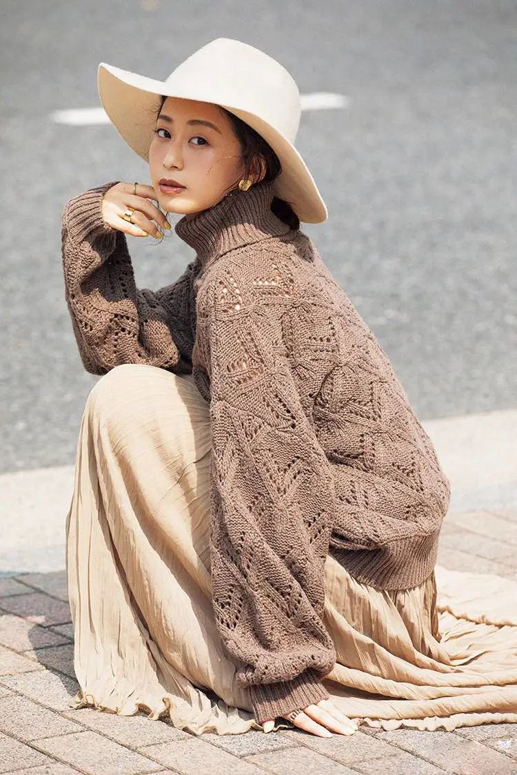 或者温度允许的情况下,外套镂空毛衣,也显得搭配很精致。