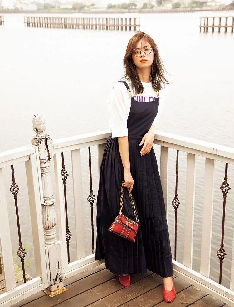 强烈推荐blouse宫廷衬衫,无论是繁复的荷叶边元素,还是简单的灯笼袖,搭配起来都很有女人味儿~T恤 + 吊带裙和我一起在华南的朋友可以穿穿长袖T(话说最近我也买了一件长袖T~)大家应该注意到呐~内搭与吊带裙的搭配,要注意简繁结合,如果是纯色T的话,外搭可以是质感取胜的绸缎吊带裙,或者纹理吊带裙。