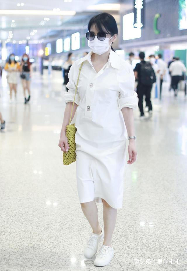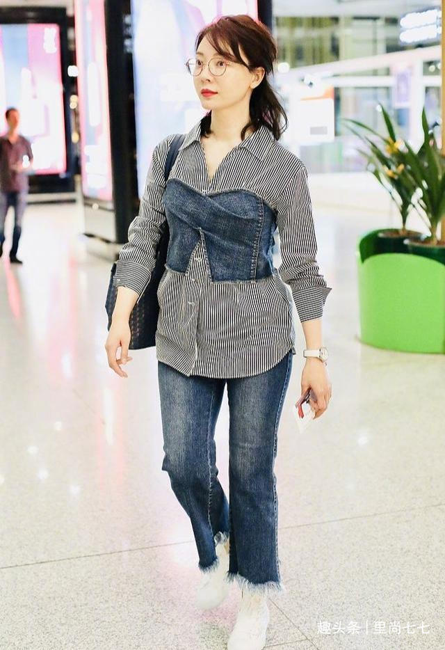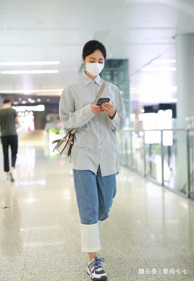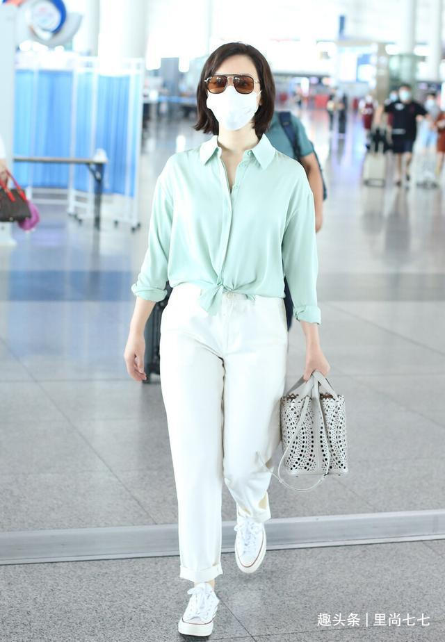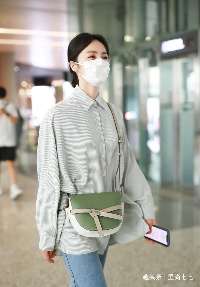 活动后孙莉独自现身走机场,罕见单独走机场的她,身穿衬衣牛仔裤,利用基础款搭配出了自己的风格和水准。首先被这一身柔和清新的配色给美到了,青色细腻竖条纹衬衣搭配蓝色牛仔裤,以蓝紫色运动鞋收尾,而让配色提升几个level的还是白绿撞色的包包,超大挽边也增加造型的明亮度,这样温柔的冷色系造型,在夏季实在太养眼了。配色看着还是比较多的,但是全身冷色系给人清凉加倍又和谐的效果,与孙莉那种眉目含情的味道非常搭。