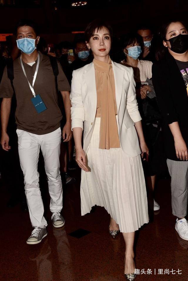 久违露面的她参加活动,一身小黑裙loewe2020秋冬系列黑色针织长裙内搭白色衬衫亮相,经典黑白配简约高级,复古尖领与高领结合的衬衣叠穿优雅黑色长裙,浑身散发着古典优雅气质,端庄大方又显温婉柔情。外搭裙装插肩袖温婉却也特别考验身材,做家庭主妇这么多年的孙莉,直角肩依旧精致到可以驾驭这个设计,一看就非常注重身材保持了。