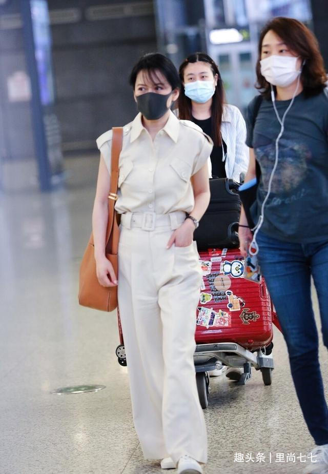 黄磊娇妻孙莉罕见走机场,穿阔腿裤有气场,172身高轻松20cm卷边