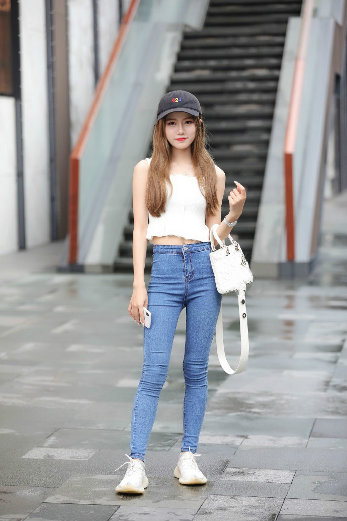 就像选择牛仔裤的小妹妹一样,修身长裤不仅能让整个人的身材更加灵活,还能展现出修长匀称的腿部线条。同时,小妹还搭配了一双白色运动鞋,整个人的造型气质瞬间显得充满活力,充满青春运动感。此外,牛仔裤的长度刚好到脚踝,这使得整个形状更有层次感。