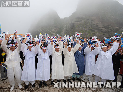 2008年7月14日,大批韩国人在独岛(日本称“竹岛”)手举国旗抗议。