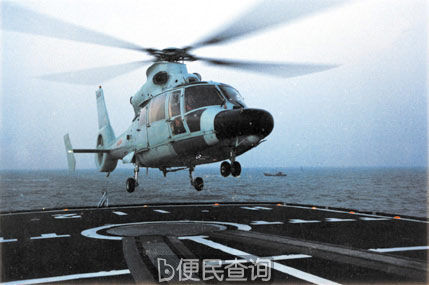 24日下午,胶州湾海面飘着淡雾,一架直升机从远处飞来,慢慢降落在一艘我国自行研制的导弹驱逐舰“格栅”平台上,然后直升机在平台上旋转360°,再次试飞试落。这艘导弹驱逐舰,是在这年7月完成加装直升机舰面系统工程的。这次舰载直升机试验成功,将有效地扩大驱逐舰的作战半径。