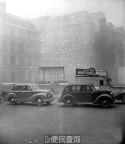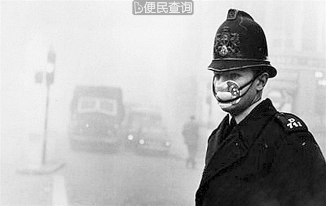 1952年12月5-8日,一场灾难降临了英国伦敦。地处泰晤士河河谷地带的伦敦城市上空处于高压中心,一连几日无风,风速表读数为零。大雾笼罩着伦敦城,又值城市冬季大量燃煤,排放的煤烟粉尘在无风状态下蓄积不散,烟和湿气积聚在大气层中,致使城市上空连续四五天烟雾弥漫,能见度极低。在这种气候条件下,飞机被迫取消航班,司机甚至需要人坐在引擎盖上指引才能开车,行人走路都极为困难,只能沿着人行道摸索前行。