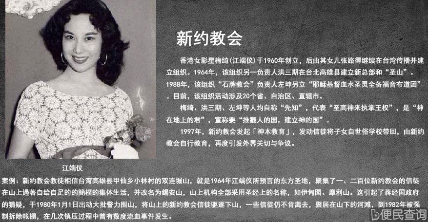 自20世纪80年代以来,我国进人经济转轨和社会转型的双重变革时代。变革与转型孕育着生机和创造力,也经历着社会巨变中的破坏性失范,甚至是罪恶的阵痛。当代中国社会相继滋生出一批光怪陆离的邪教组织。当代中国定性的冒用宗教旗号的邪教组织有14个,其中境外渗透传入的有11个,它们是“呼喊派”、“被立王”、“中华大陆行政执事站”、“全范围教会”、“天父的儿女”、“达米宣教会”、“新约教会”、“灵仙真佛宗”、“观音法门”、“世界以利亚福音宣教会”、“统一教”;境内土生土长的3个,它们是“徒弟会”、“灵灵教”、“三班仆人派”。