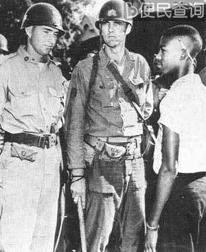 1957年9月初,美国阿肯色州小石城地方法院根据1954年最高法院关于取消公立学校中种族隔离的决定,宣布该市公立中心中学接纳9名黑人学生入学