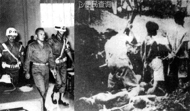 左:翁东中校被带到法庭;右:被捕后排队等待被屠杀的印尼共产党人