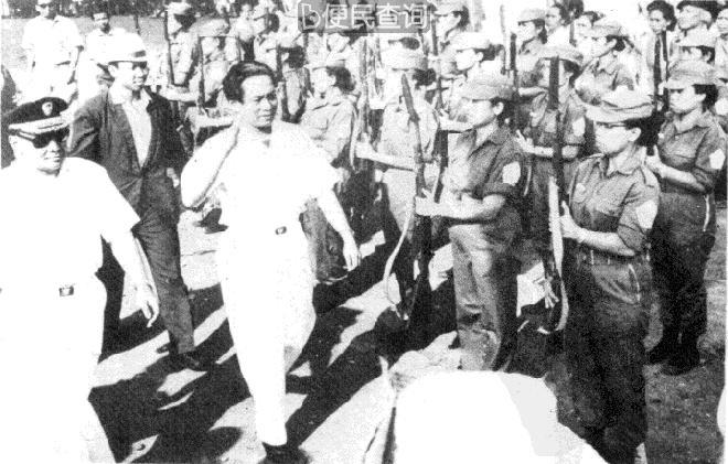 印尼共主席艾地(左二)在“九三零”大屠杀前夕检阅印尼共女志愿军