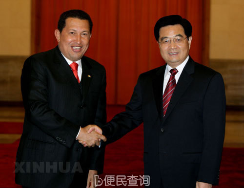 8月24日,国家主席胡锦涛在北京人民大会堂举行仪式,欢迎委内瑞拉总统查韦斯访华。