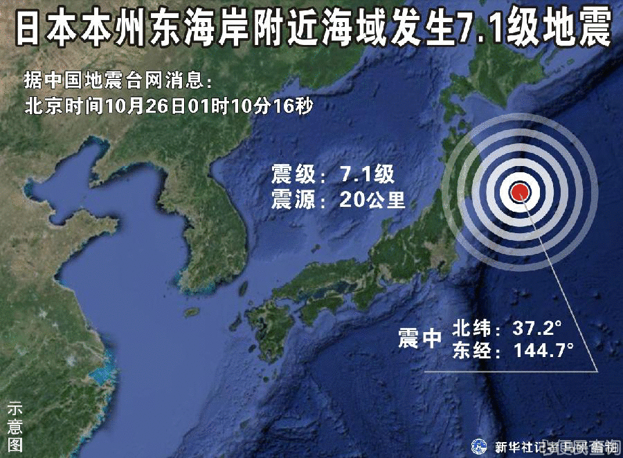 2013年10月26日“中央社”报道,日本福岛县外海于日本时间凌晨2时10分左右,观测到规模7.1级强震。日本气象厅对日本东北及关东地区太平洋沿岸多处发出海啸注意警报。