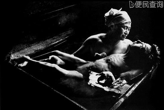 ▲《入浴的智子》。满怀爱意的智子母亲为残疾的女儿洗澡(尤金·史密斯《水俣》系列)