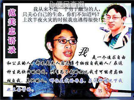 汶川地震发生不久,都江堰光亚中学教师范美忠网上发文,自述地震发生时,自己抛下学生,第一时间跑出教室,他辩解称———“我从来不是一个勇于献身的人,只关心自己的生命,你们不知道吗?上次半夜火灾的时候我也逃得很快!”“在这种生死抉择的瞬间,只有为了我的女儿我才可能考虑牺牲自我,其他的人,哪怕是我的母亲,在这种情况下我也不会管的”……范的言论引发网友强烈声讨,并被称为“落跑老师”、“范跑跑”。