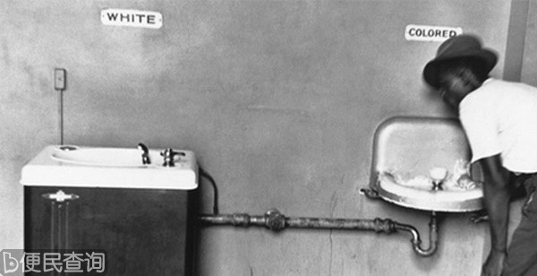 种族隔离。分离的水池,大的好的给白人用,小的给有色人种。