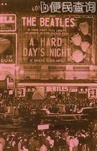 甲壳虫乐队拍摄的第一部影片《一个苦日子的夜晚》在伦敦首映的情景。