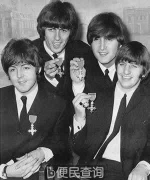 英国女王伊丽莎白二世亲自给甲壳虫乐队颁发奖章和证书