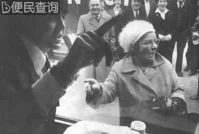 在白金汉宫门口,即将领取勋章的保罗-麦卡特尼兴奋异常,列侬为他拍了这张快照车外是一个打算留影的“披头士”迷。
