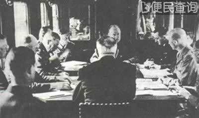 1940年6月22日,在法国小镇贡比涅,法、德两国签署停战协定。希特勒决定不在镇上著名的城堡举行签字仪式。仪式是在一节火车车厢里进行的。第一次世界大战德国战败后,就是在这节车厢内,德国向协约国投降,希特勒认为德国曾在此蒙受了巨大的屈辱,也必须让法国人尝到这个滋味。