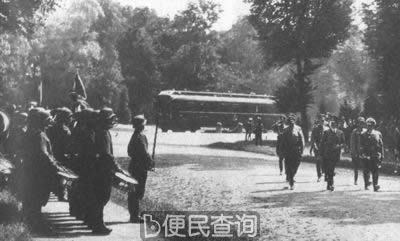 法德《贡比涅停战协定》签字后,法军将领恩特齐热由一名德国军官引导离开谈判现场