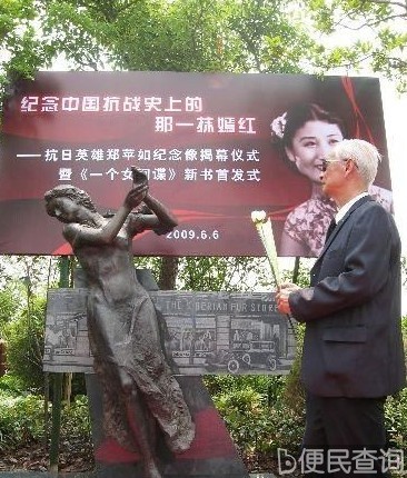 2009年6月6日,电影《色·戒》中女主人公的原型郑苹如青铜纪念像在上海福寿园揭幕,再现了中国抗战史上这位一度蒙受不白的女英雄真实形象。雕塑的基座是一座倾斜的十字架结构,横着的背景上模拟了当年西伯利亚皮货店刺杀汉奸丁默邨的情景,雕塑家采用模拟捆绑造型重现郑苹如将赴就义的一幕。