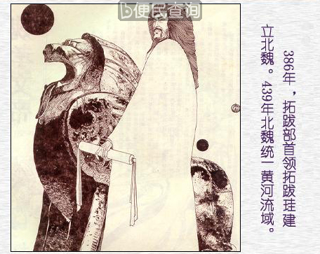 398年拓跋挂建都平城(今山西大同),他让鲜卑族人分地定居,从事农耕,任用汉族地主当官,学习汉族先进的制度,加速了鲜卑社会的发展。