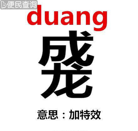 那么,这个“duang”要怎么用呢?记者发现,在众多网友的使用中,多用其来表达某种声响或者特效,不过“duang”并没有对应的汉字,有网友提出词语“嘟昂”比较接近其意味,也有网友生造了一个汉字,这个字上下结构,上面是成,下面是龙,合起来就是“duang”字。