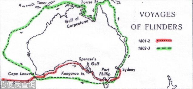 马修·福林达斯(Matthew Flinders,1774年3月16日-1814年7月19日)是当时19世纪初以前许多航海家与画地图者中最成功之一;在他略超过20年的专业工作生涯里,他与另一位上尉威廉?布莱(知名重拍电影叛舰喋血记史实舰长)共同搭船航行绕澳大利亚,及以他被鼓励为澳大利亚许多新发现地区命名、也遭遇过船难被救起来、唯一灾难是以间谍罪名囚禁他,搭乘木造船凭借罗盘导引航向靠岸,这是“探勘未知澳大利亚”第一位播种者,以他钢铁般意志克服达成、验证与修正数据并予已登载在《对澳大利亚版图的海航》.