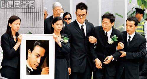 2003年4月8日,张国荣的葬礼在香港殡仪馆举行,由唐先生以“挚爱”的身份与亲友打点身后事。大批歌迷聚集于殡仪馆外,到场的演艺明星众多,如张国荣生前的红颜知己梅艳芳,悲痛至泣不成声。他生前的三位好友,导演徐克、香港著名填词人黄沾和艺人代表张学友分别致悼词。周润发、徐克、张学友、关锦鹏、刘培基、梁家辉、林夕、刘纯豪、罗建基为其扶灵,送张国荣最后一程,遗体随后送往哥连臣角火葬场火化。海内外多家电视台均现场直播报道葬礼实况。当时正值“非典”爆发期,居民轻易不敢出门,但是出殡当日仍然有来自世界各地的四万名群众冒雨聚集在香港殡仪馆周围,人群占据了几条街道,成为香港史上最轰动的葬礼之一。