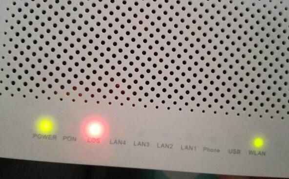 3.查看光猫上指示灯状态,自行判别宽带能否有问题。假如 光信号(LOS)指示灯是红色常亮/闪烁,这是光猫/宽带线路有问题,本人无法处理,请联络运营商处理。