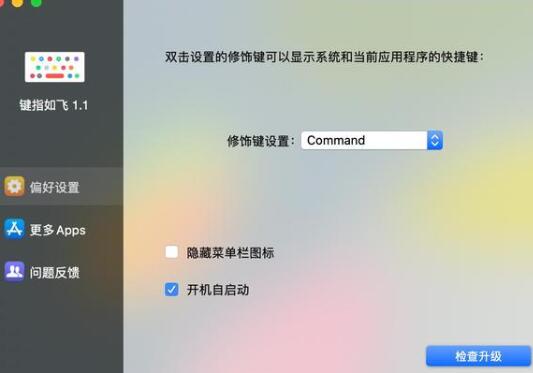键指如飞不只是单纯把Mac电脑系统自带的方便键显现出来,它自己也设置了许多方便键,能够帮助我们快速翻开微信啊,淘宝之类的使用,特别方便。