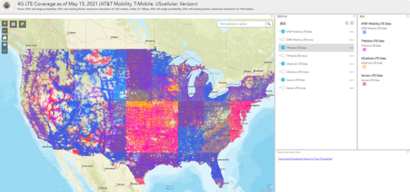 IT之家 8 月 7 日音讯 美国联邦通信委员会 (FCC) 发布了其首个移动宽带掩盖图。该东西可让用户比较美国四大运营商的 4G LTE 和语音掩盖区域,显现无线下载和上传速度别离至少为 5 Mbps 和 1 Mbps 的位置。