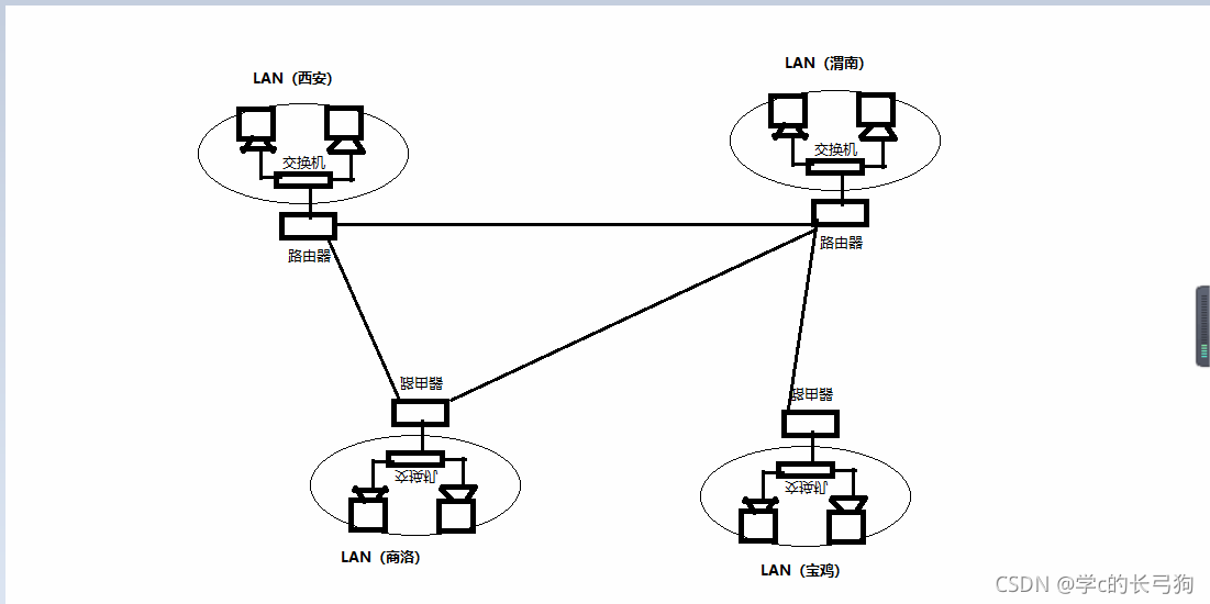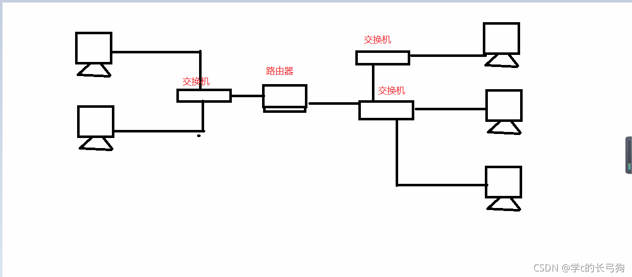 局域网:有更多的计算机通过开关和路由器连接在一起。