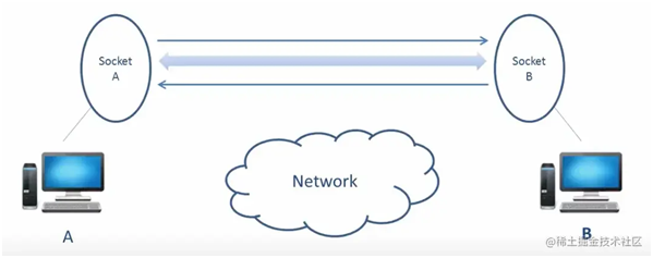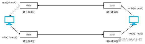 计算机 A 现在计算机 A 和计算机 B 连接到 Socket? 不, Socket 先通过 Socket 的读写缓冲传输数据, 因此让我们通过 Socket 的读写缓冲。