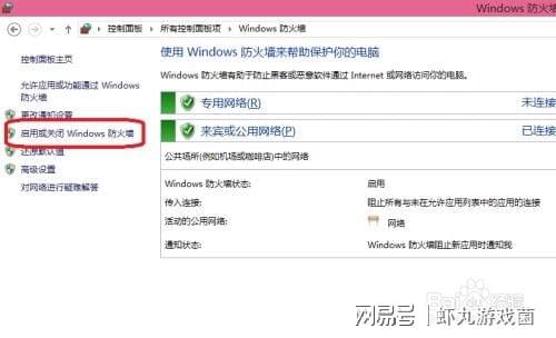 2. 在单击图左下角的防火墙功能后,选择“启用或关闭窗口防火墙”选项。