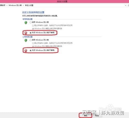 3. 关闭Windows防火墙,通过选择图片中描述的选项,避免计算机网络拦截。