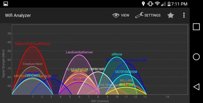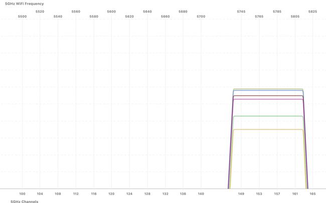 例如,Wi-Fi正在使用同一频道,至少有五个路由器,如频道分布图所示。