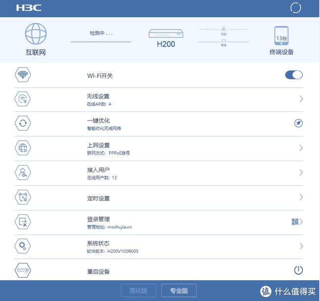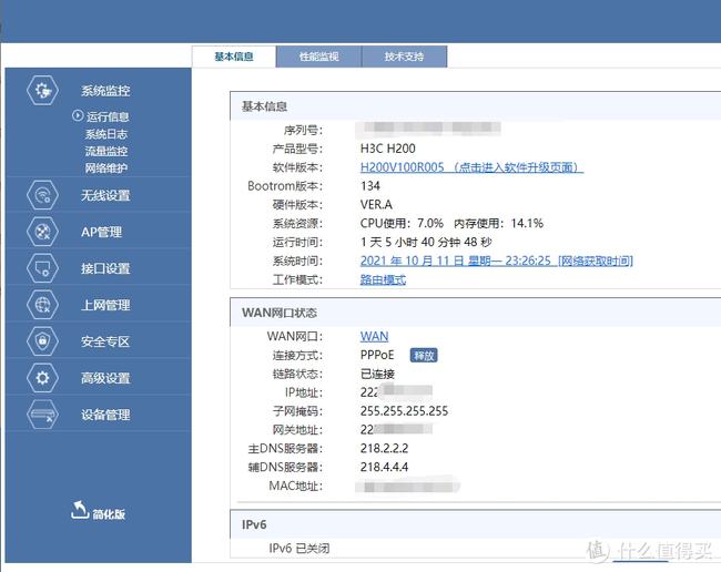 H3C家用商品的逻辑是保证基本设置逻辑是安全的,先进功能默认关闭,而性能稳定性是第一个。所以我们默认了H200管理,发现5G 160 MHz的宽度被80兆赫、AP 默认漫游和MU-MIMO(我不知道是什么)默认关闭。H3C是保守的,其他货物也被邀请留下信息。