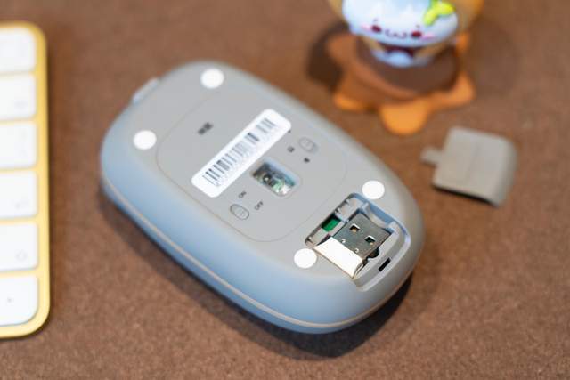 鼠标表面是用亚紫外线亲皮肤材料制成的,该物质与沙地相近,没有指纹。 USB接收器储存设施位于鼠标底部,可以吸收接收器。